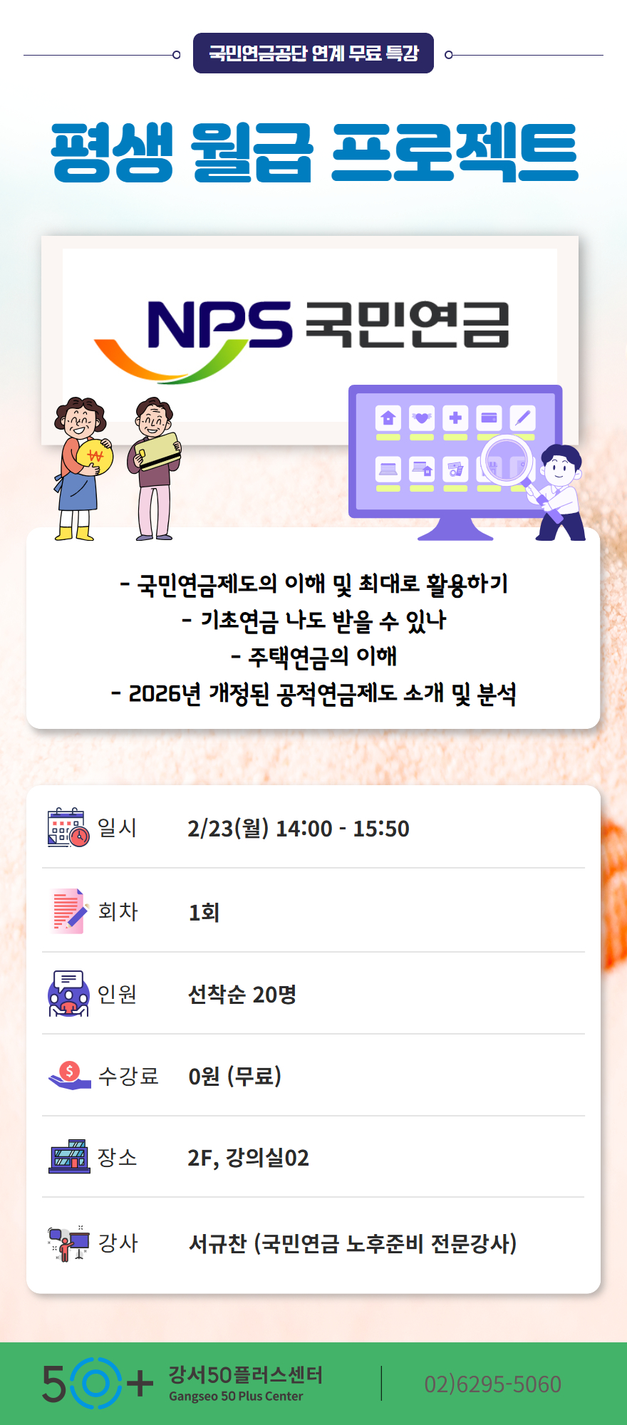 (1 회차) 2026.02.23(14:00 ~ 16:00) 쏙쏙쑥쑥 강의실02(2F) 서규찬 - 국민연금제도의 이해 및 최대로 활용하기