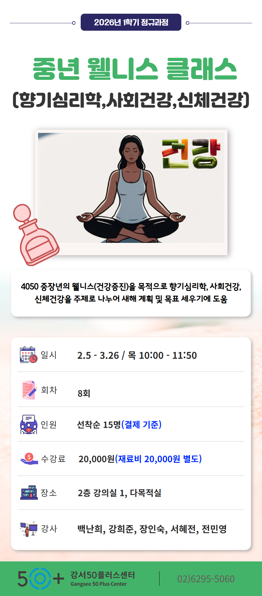 중년 웰니스 클래스(건강아로마, 관계/여행/지역살이, 바른자세/퍼스널컬러)