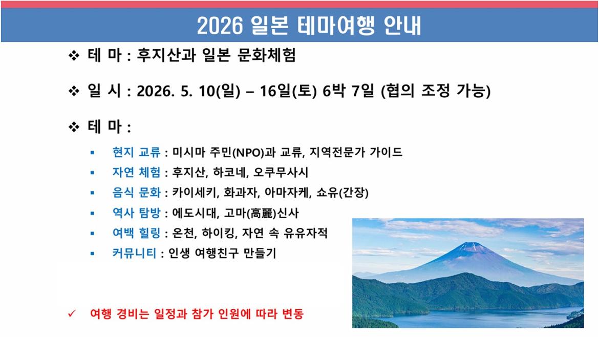 [테마여행교실] '후지산과 일본전통문화를 체험하는 테마 여행'