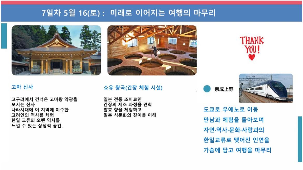 ▶ 여행일정(안) : 2026년 5월 10일(일)~16일(토) 6박7일간