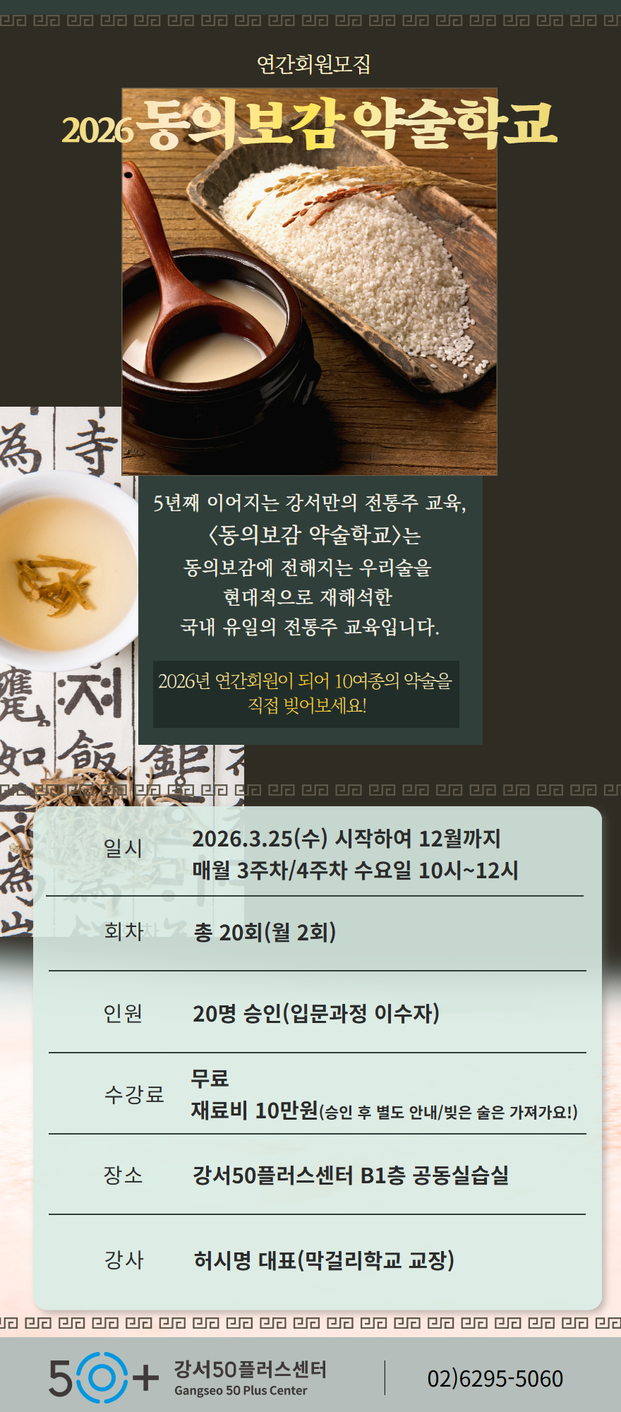 강서50플러스센터 동의보감 막걸리 약술 유산청 일활동지원