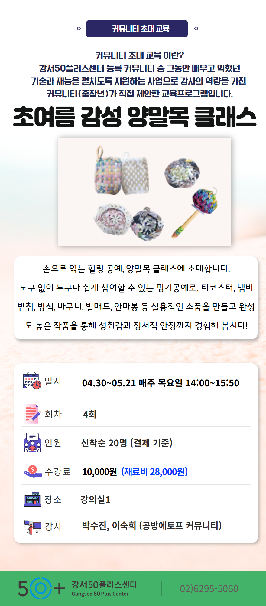 [커뮤니티초대교육] 초여름 감성 양말목 클래스