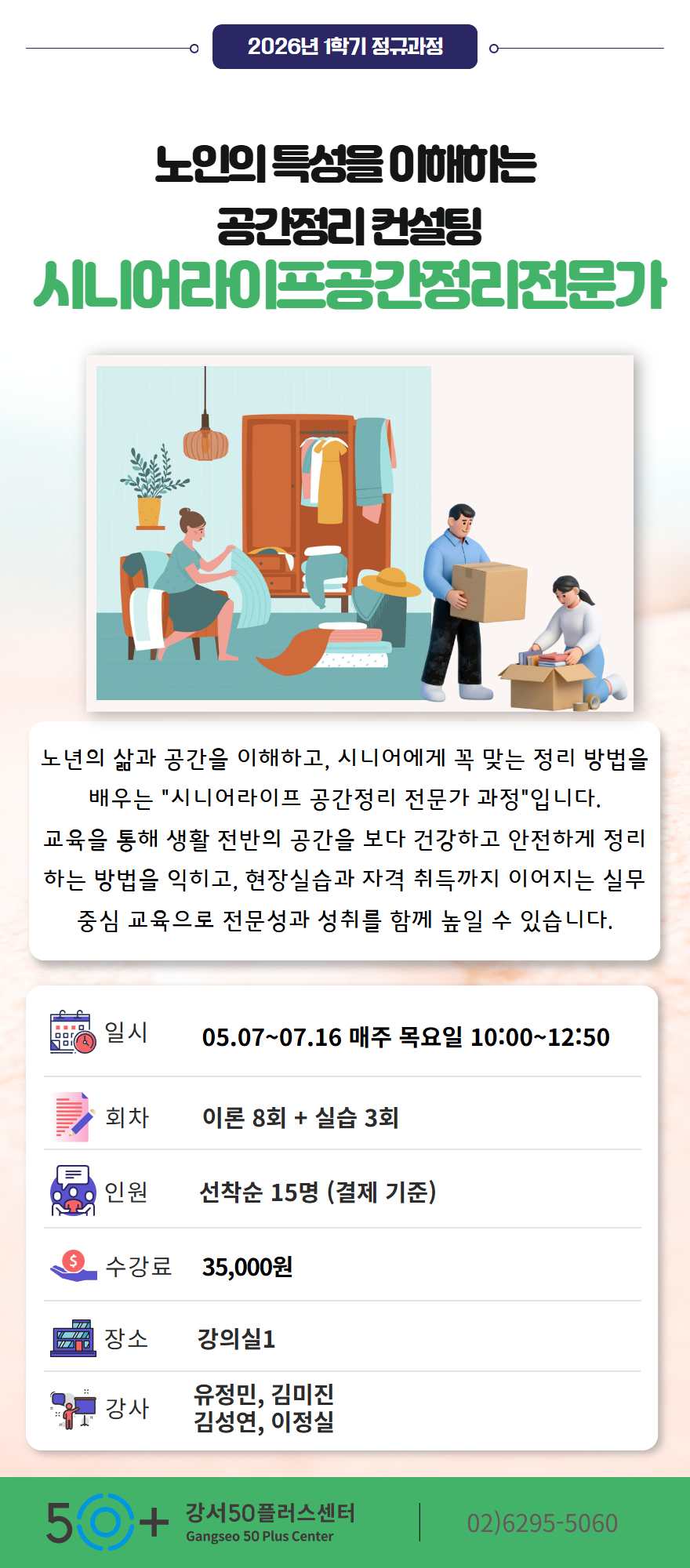 (1 회차) 2026.05.07(10:00 ~ 13:00) 쏙쏙쑥쑥 강의실01(2F) 유정민 시니어라이프 공간정리의 이해