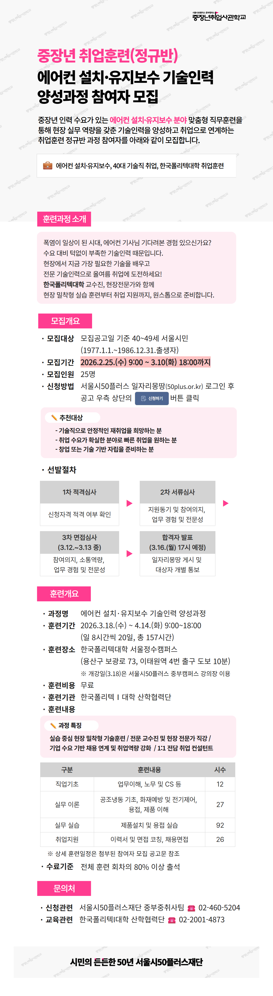 중부캠퍼스, 중장년취업사관학교, 정규반, 취업훈련, 직무훈련, 40대, 에어컨, 기술직, 한국폴리텍대학교