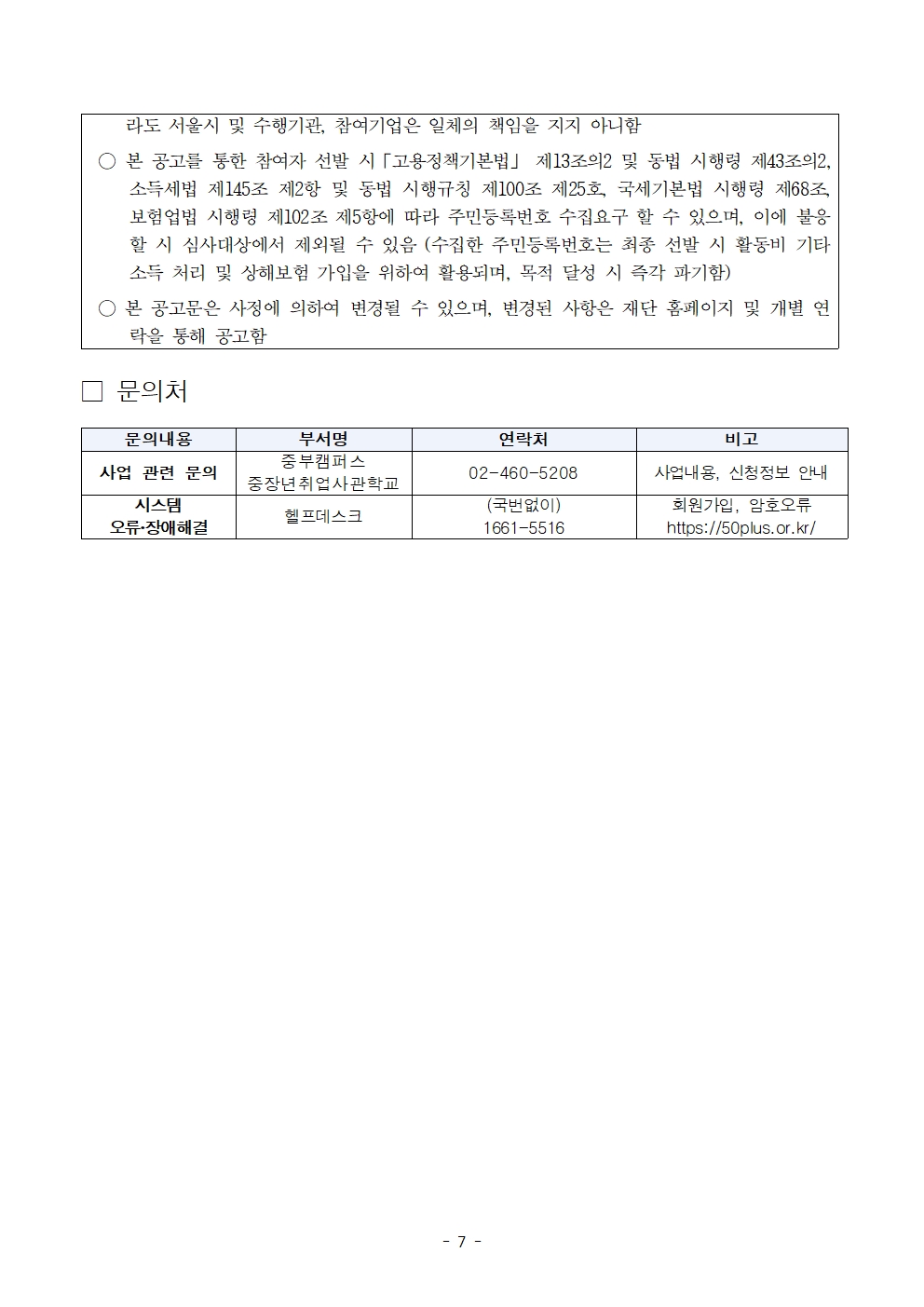 [중부] 중장년 경력 인재 지원(직무체험형) 1차 참여자 모집마감 D-7