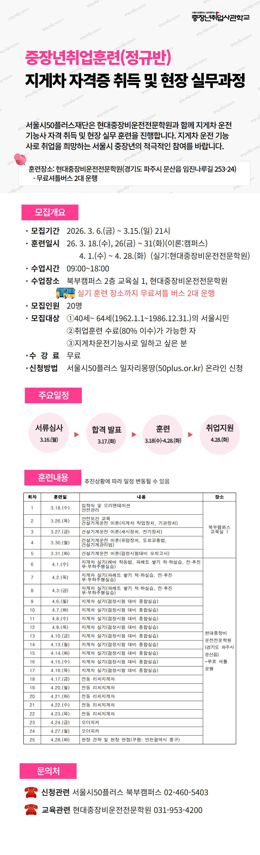 장소 (이론)북부캠퍼스 (실기)현대중장비운전전문학원