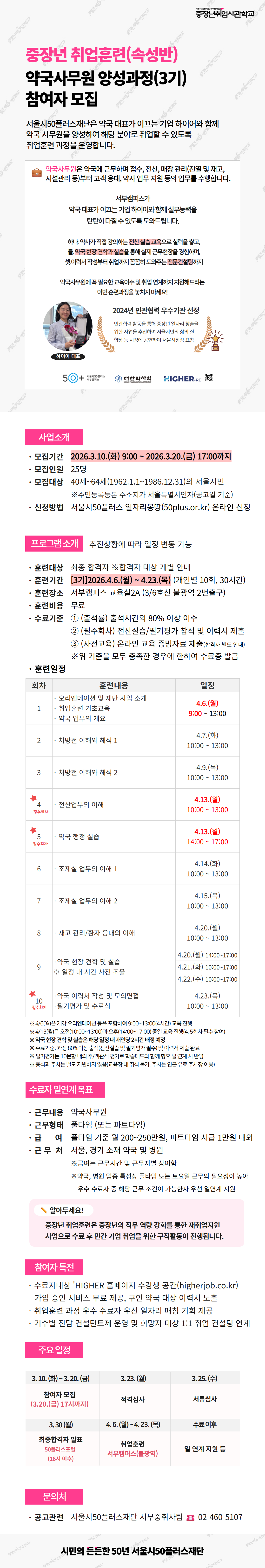 속성반 「약국사무원 양성과정(3기)」참여자 모집 공고마감 D-8