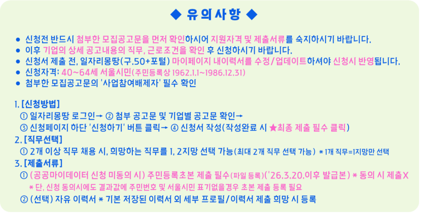 신청방법 일자리몽땅 회원가입 후 해당공고에 신청하기