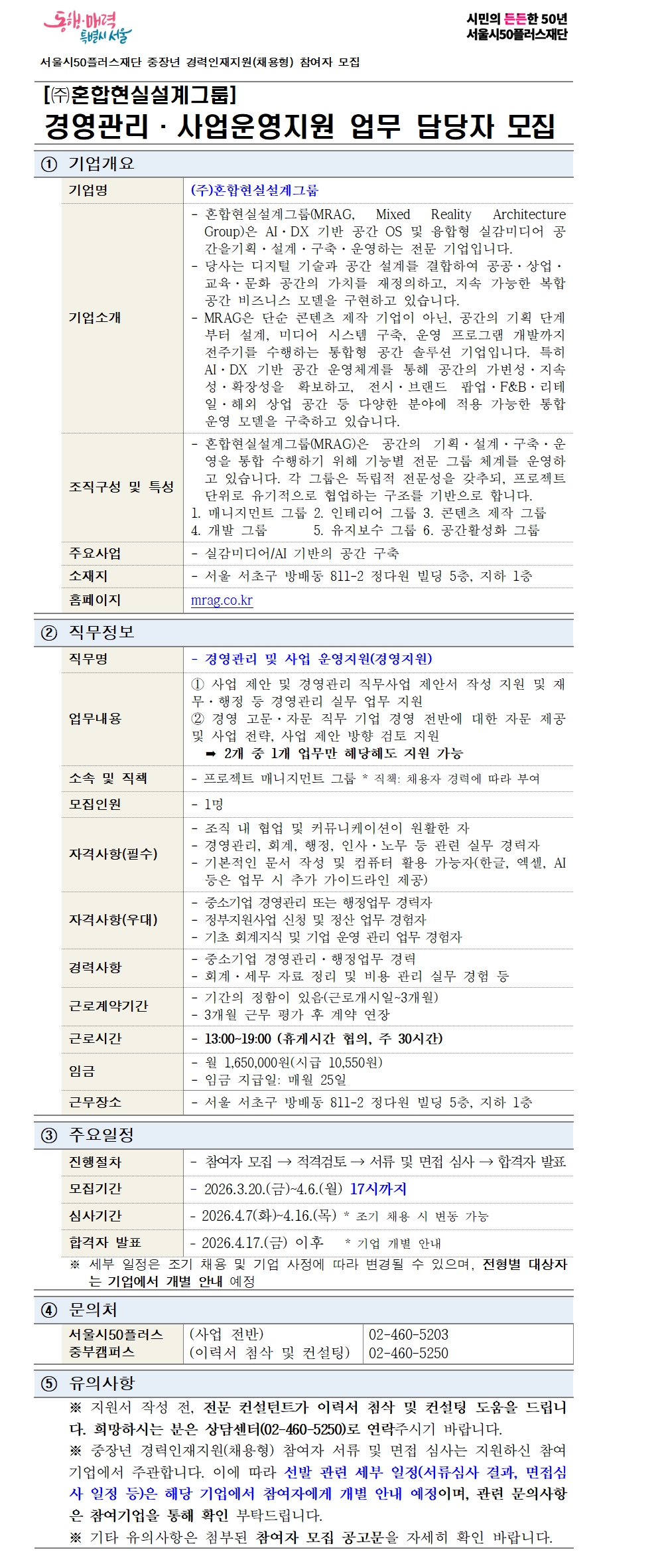 중장년 경력인재지원(채용형) 참여자 모집_(주)혼합현실설계그룹마감 D-16