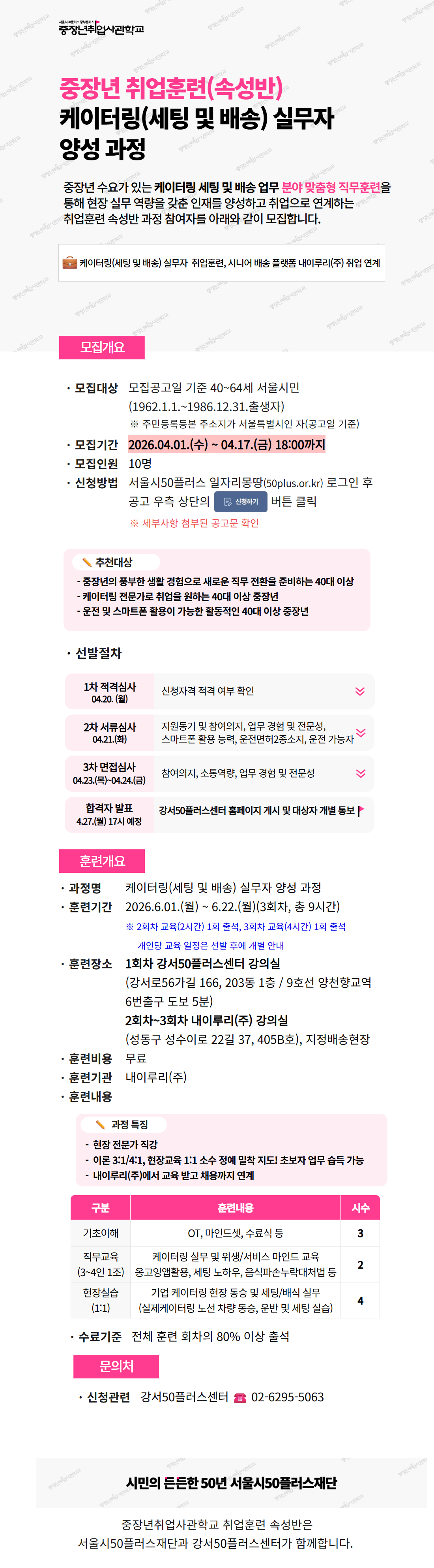 속성반 「케이터링(세팅및배송)실무자 양성 과정」 참여자 모집 공고마감 D-16