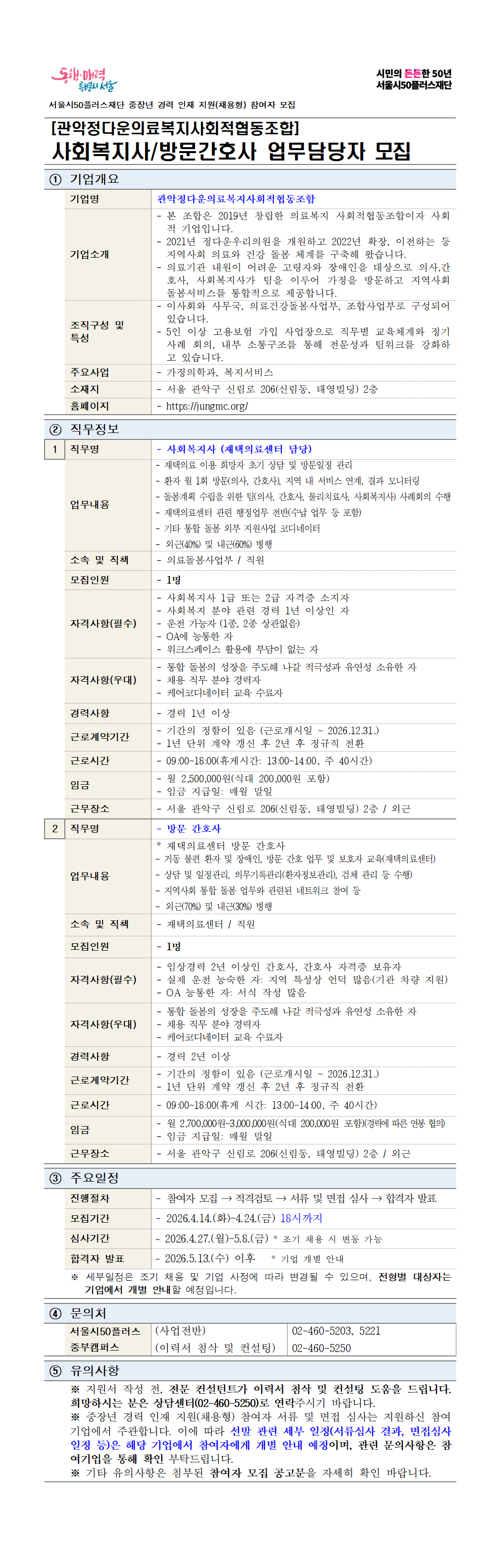 직무명 - 사회복지사, 방문간호사