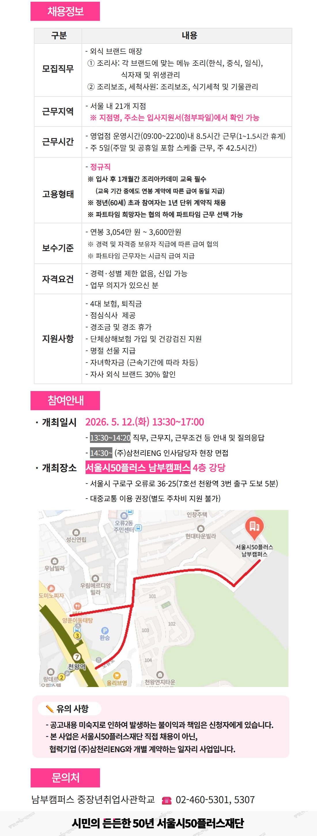 장소 서울시50플러스 남부캠퍼스 4층 강당(서울시 구로구 오류로 36-25)