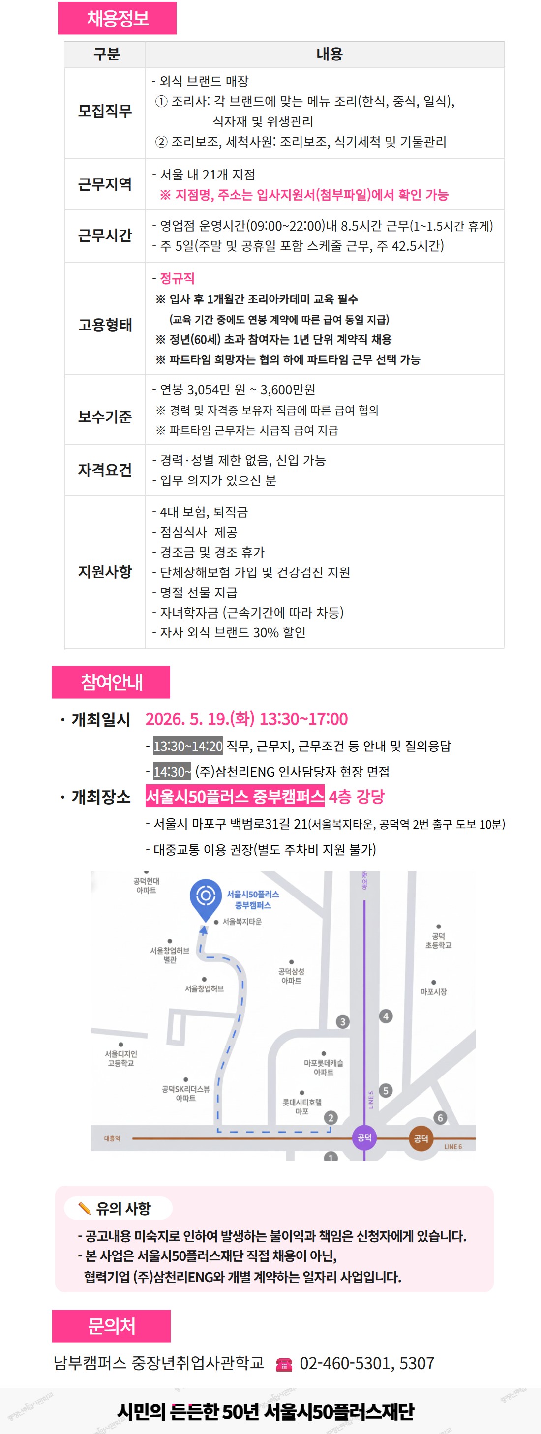 장소 서울시50플러스 중부캠퍼스 4층 강당(서울시 마포구 백범로31길 21, 서울복지타운)