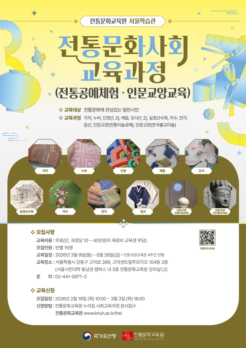 2026년도 상반기 한국전통문화대학교 전통문화교육원 교육생 모집