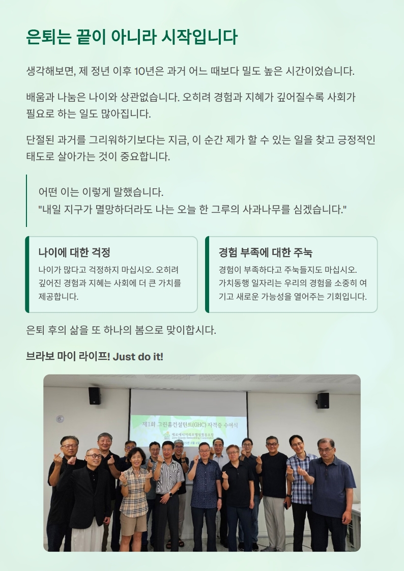 [가치동행 우수사례] 은퇴, 새로운 삶의 시작입니다