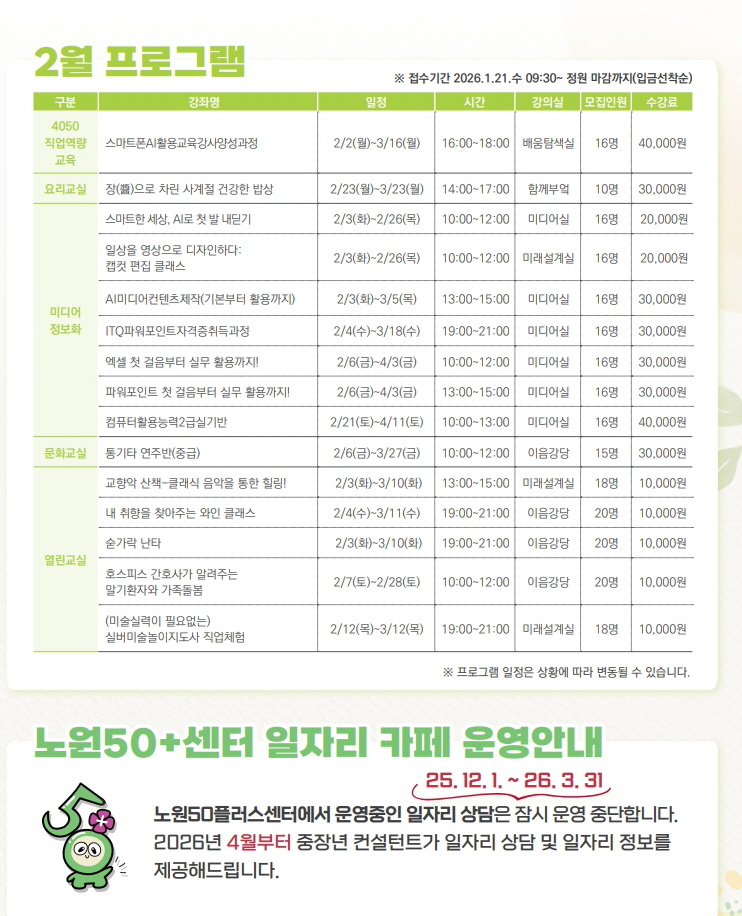 기존 배포된 전단지 내용과 변경된 강좌가 있을 수 있으니 수강 신청 시 확인 바랍니다.