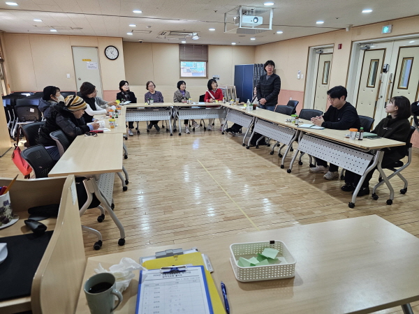 교육은 2026년 2월 25일(수) 13시부터 16시까지 노원50플러스센터 4층 이음강당에서 진행되었으며, 최종 선발된 참여자 10명이 참석하였습니다. 프로그램은 오리엔테이션 1시간과 직무교육 2시간으로 구성되어 사업의 전반적인 운영 방향과 현장 활동에 필요한 실무 내용을 중심으로 이루어졌습니다.
