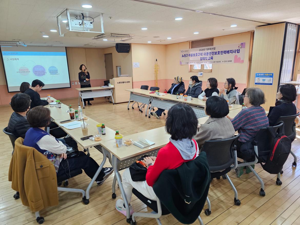 노원50플러스센터는 아동이 안전한 지역사회를 조성하기 위한 「아동안전보호인력배치사업」의 본격적인 시작에 앞서, 참여자 오리엔테이션 및 직무교육을 진행했습니다. 이번 교육은 현장 활동에 투입되기 전 참여자들이 반드시 숙지해야 할 역할과 책임을 이해하고, 실제 상황에서 필요한 대응 역량을 강화하기 위해 마련되었습니다.