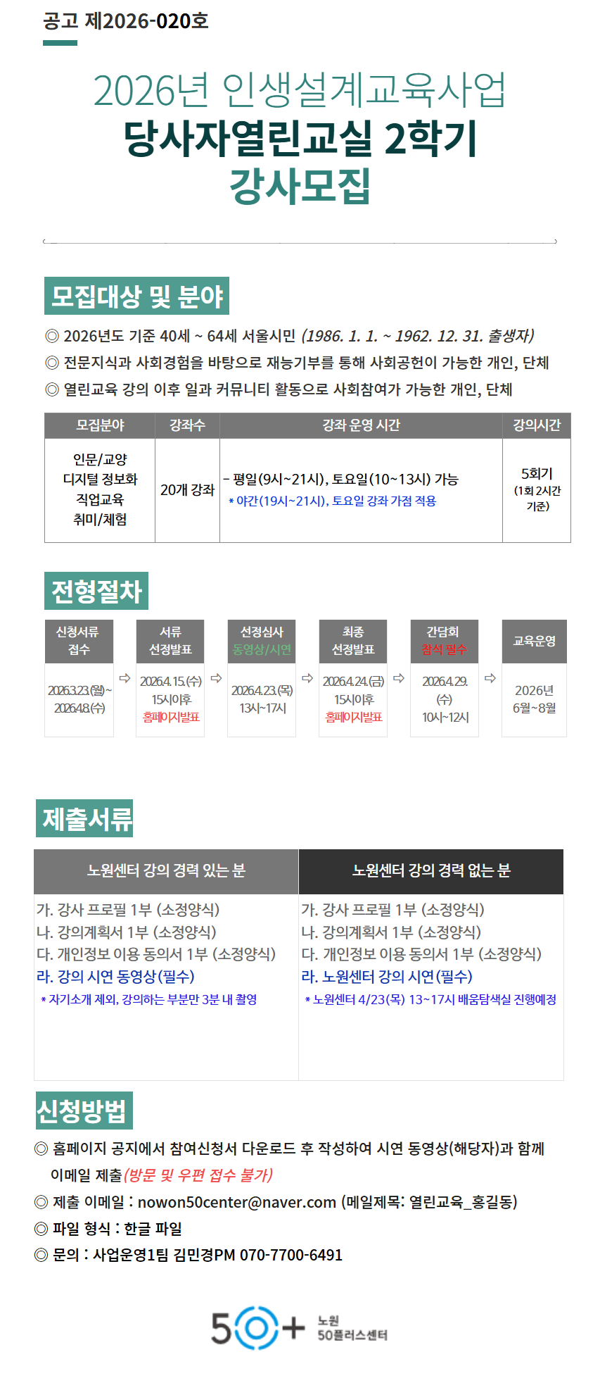 ※ 노원센터 강의 경력자 기준 : 2023년도 이후 노원센터 강의 진행한 강사