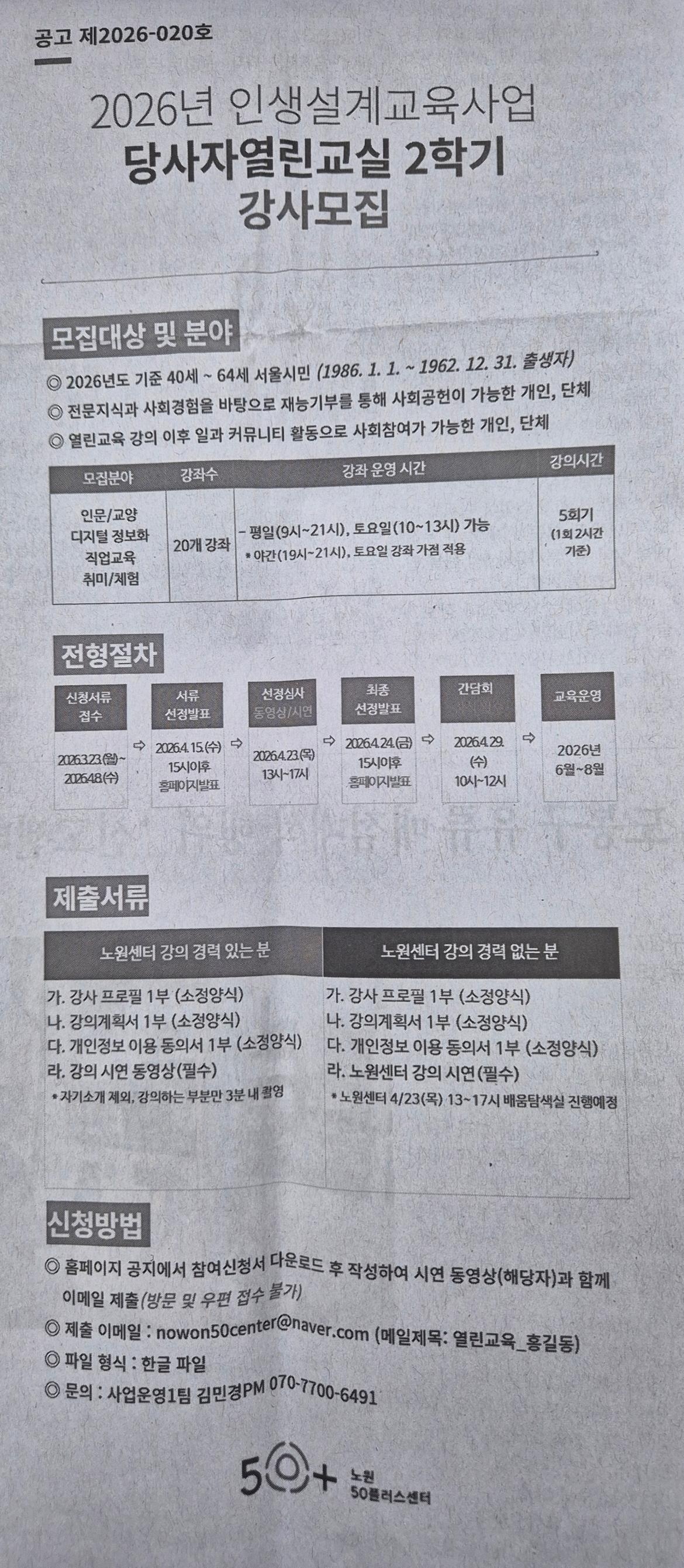 서울시 노원센터 | [지역연합신문] 2026년 당사자열린교실 2학기 강사 모집