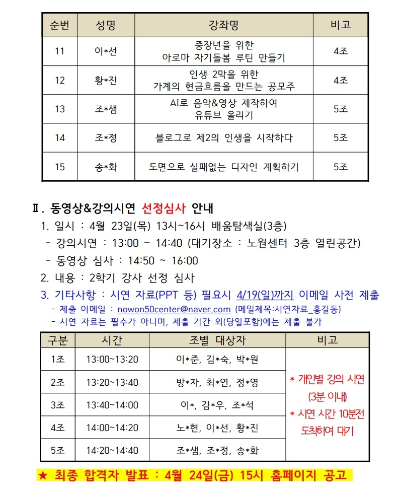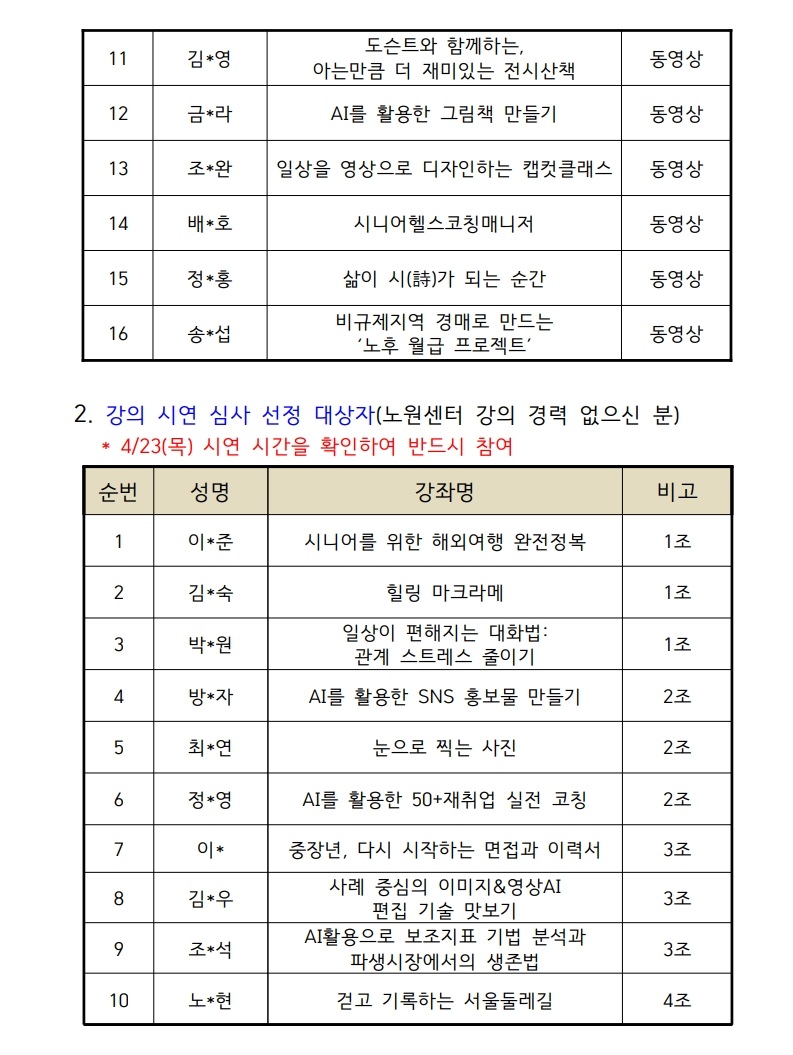 서울시 노원센터 | 2026년 당사자열린교실 2학기 강사 서류심사 선정 발표