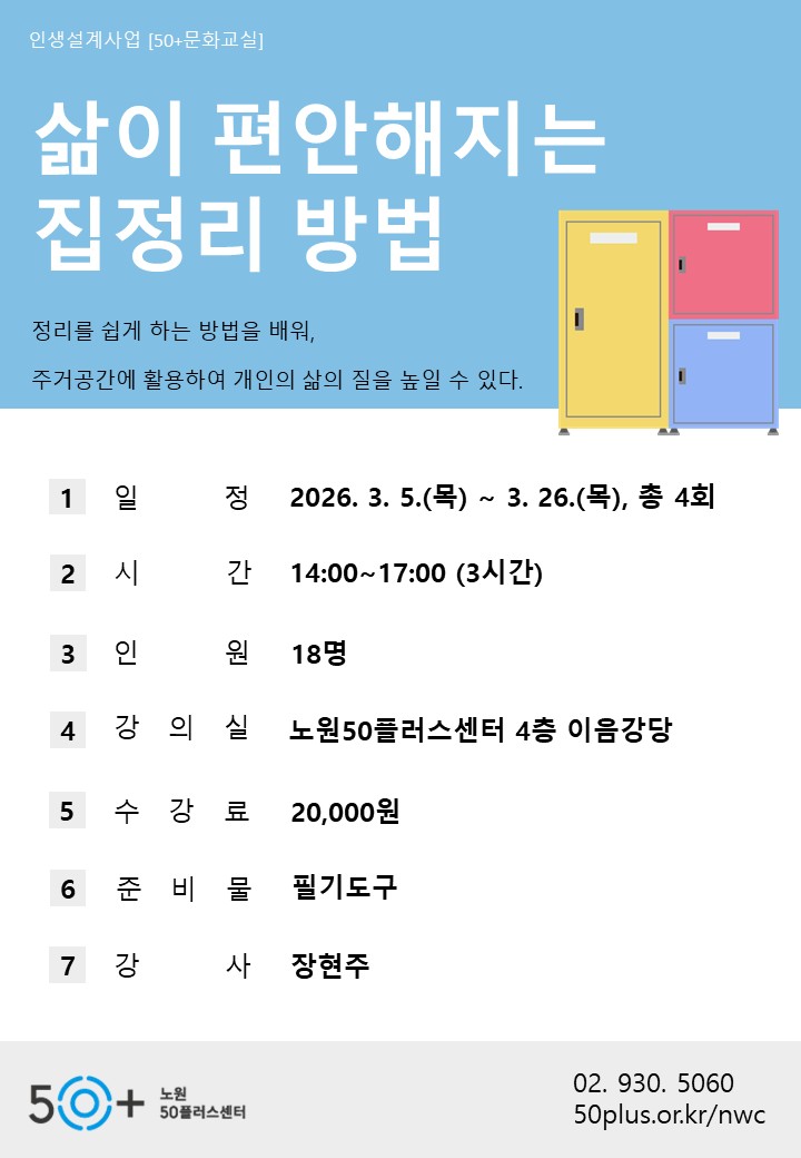 (4 회차) 2026.03.26(14:00 ~ 17:00) 이음강당(4F) 장현주 [기타 공간 정리 방법]