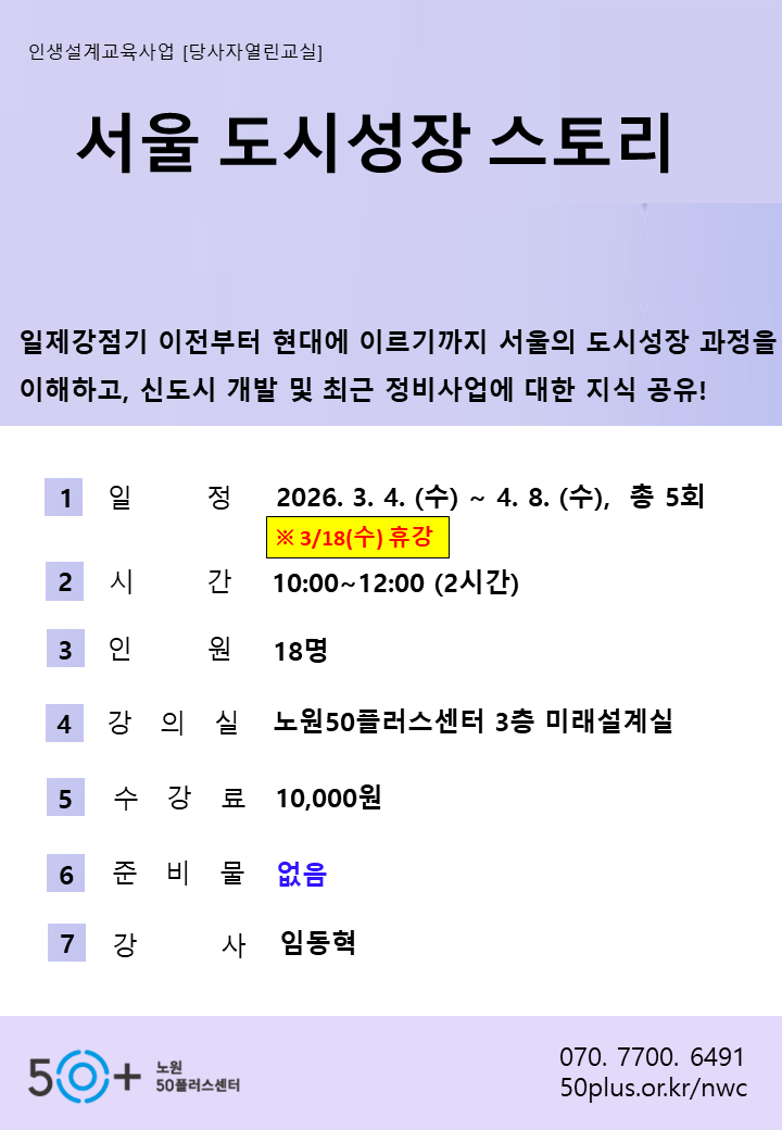 (2 회차) 2026.03.11(10:00 ~ 12:00) 미래설계실(3F) 임동혁 전쟁의 상혼을 딛고 일어선 서울