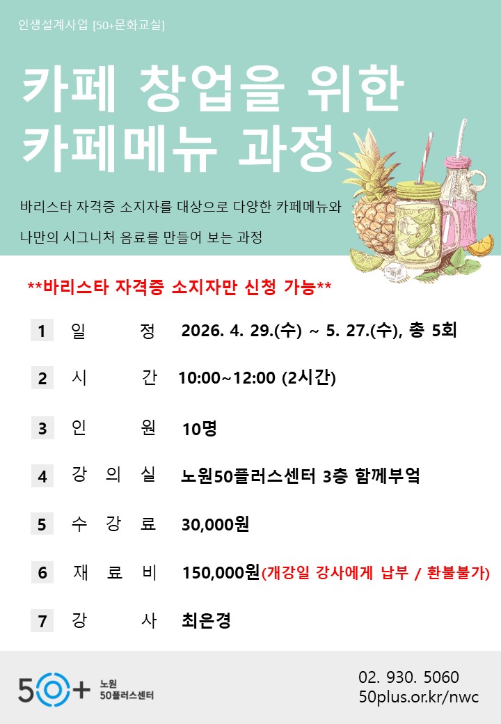 (5 회차) 2026.05.27(10:00 ~ 12:00) 함께부엌(3F) 최은경 [시그니처 음료]