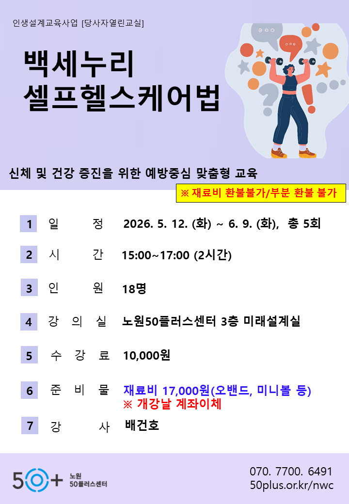 (2 회차) 2026.05.19(15:00 ~ 17:00) 미래설계실(3F) 배건호 [신체케어(만성질환) 예방프로그램 설계]