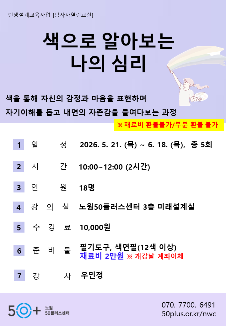 (5 회차) 2026.06.18(10:00 ~ 12:00) 미래설계실(3F) 우민정 [나만의 컬러힐링타임]