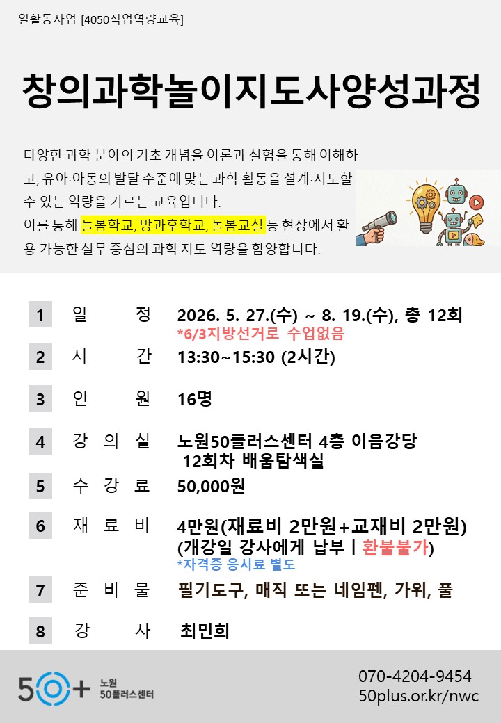 창의과학놀이지도사양성과정 (늘봄학교강사양성과정)