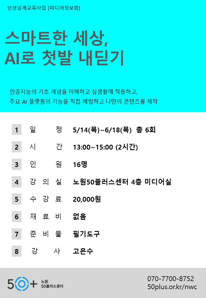 (1 회차) 2026.05.14(13:00 ~ 15:00) 미디어실(4F) 고은수 ◎ AI 활용을 위한 첫걸음