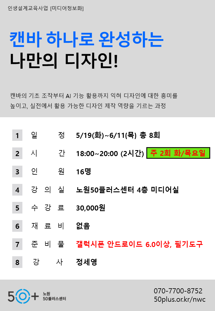 (1 회차) 2026.05.19(18:00 ~ 20:00) 미디어실(4F) 정세영 ◎ 캔바 이해