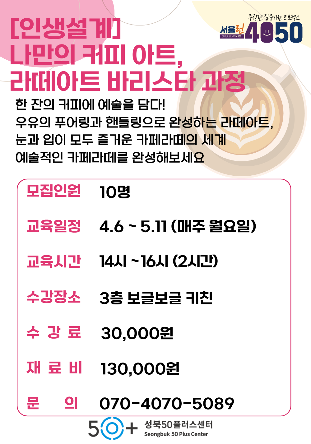본 강좌는 교육기회 확대를 위해 성북50플러스센터 강의를 처음 수강하시는 분과,
