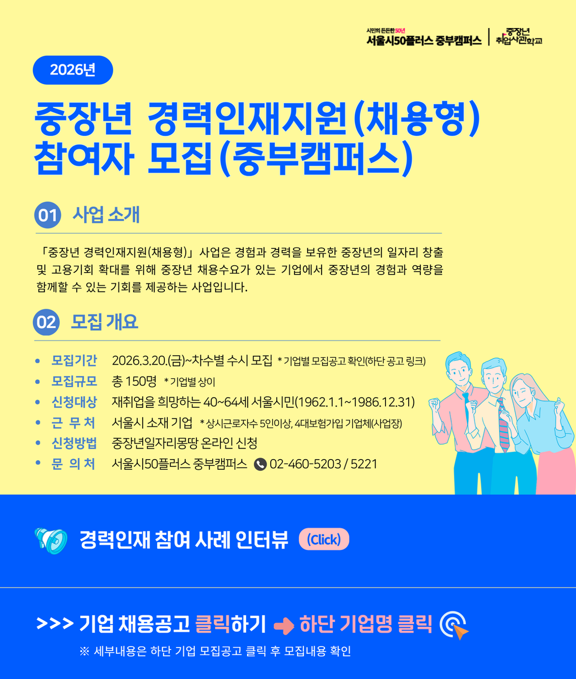 📢[모집] 2026 중부캠퍼스 중장년 경력인재지원(채용형) 참여자 모집(2차)