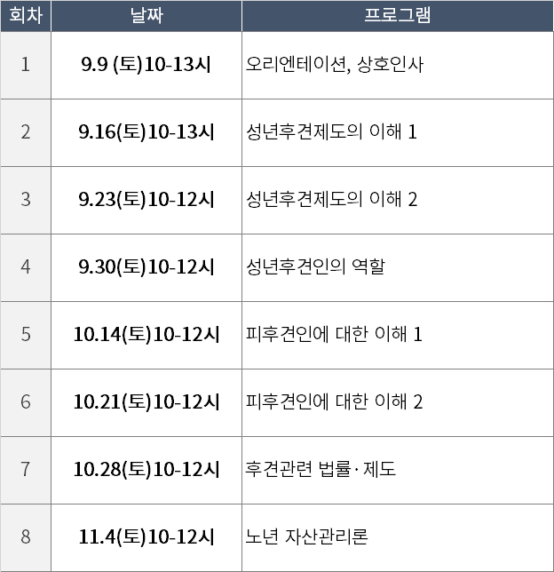 준비된 시민후견인으로 활동하고자 하는 50+세대를 위한 과정입니다.