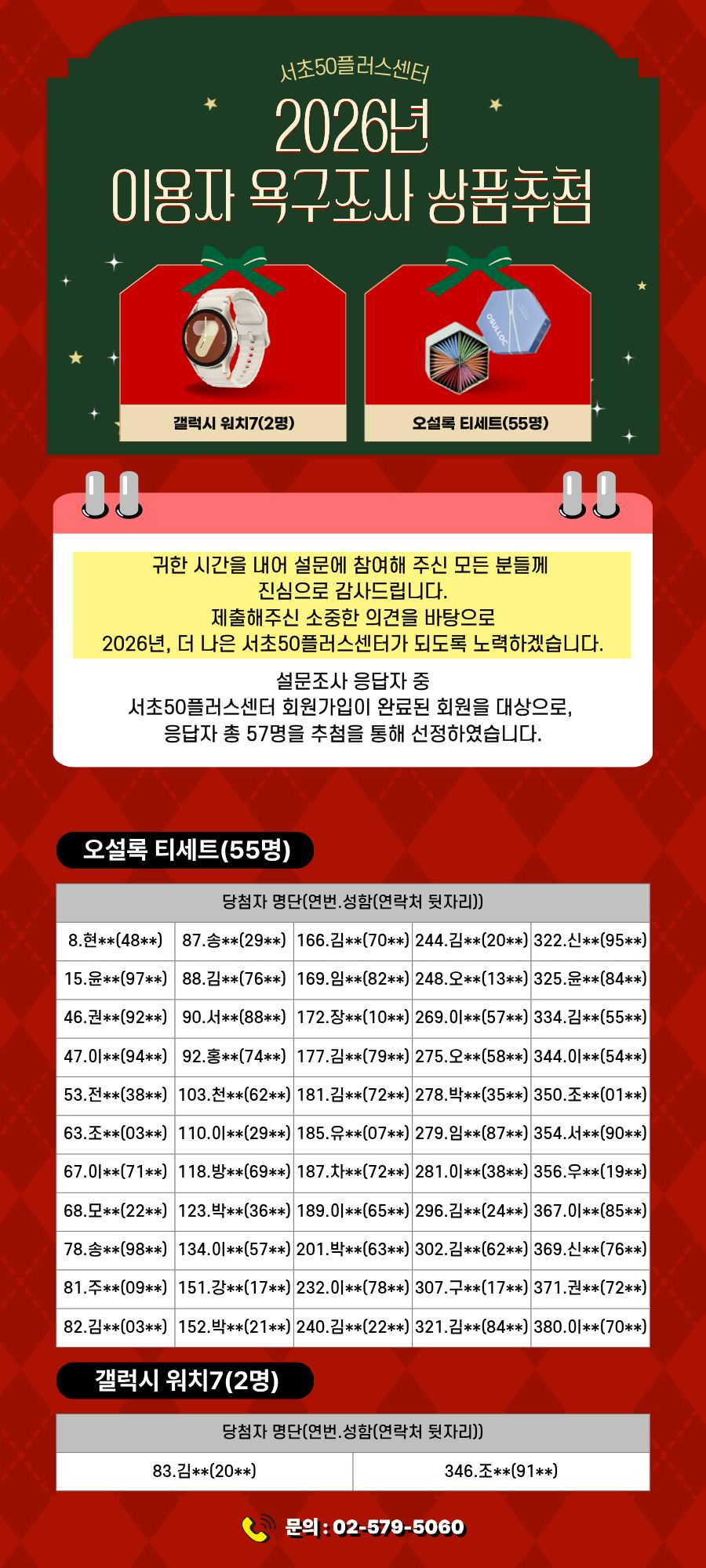 2026년 서초50플러스센터 이용자서비스 욕구조사 상품 당첨자 발표 안내