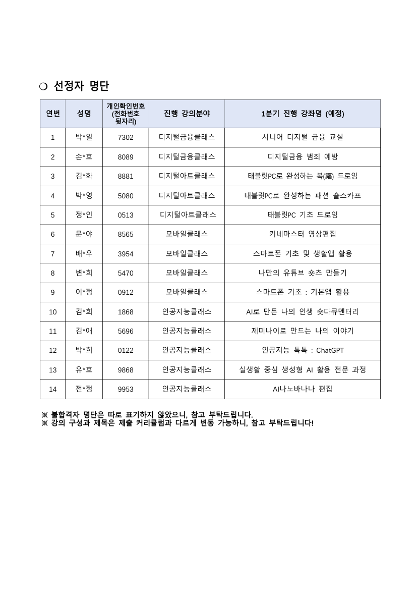 서초50플러스센터, 합격자공고