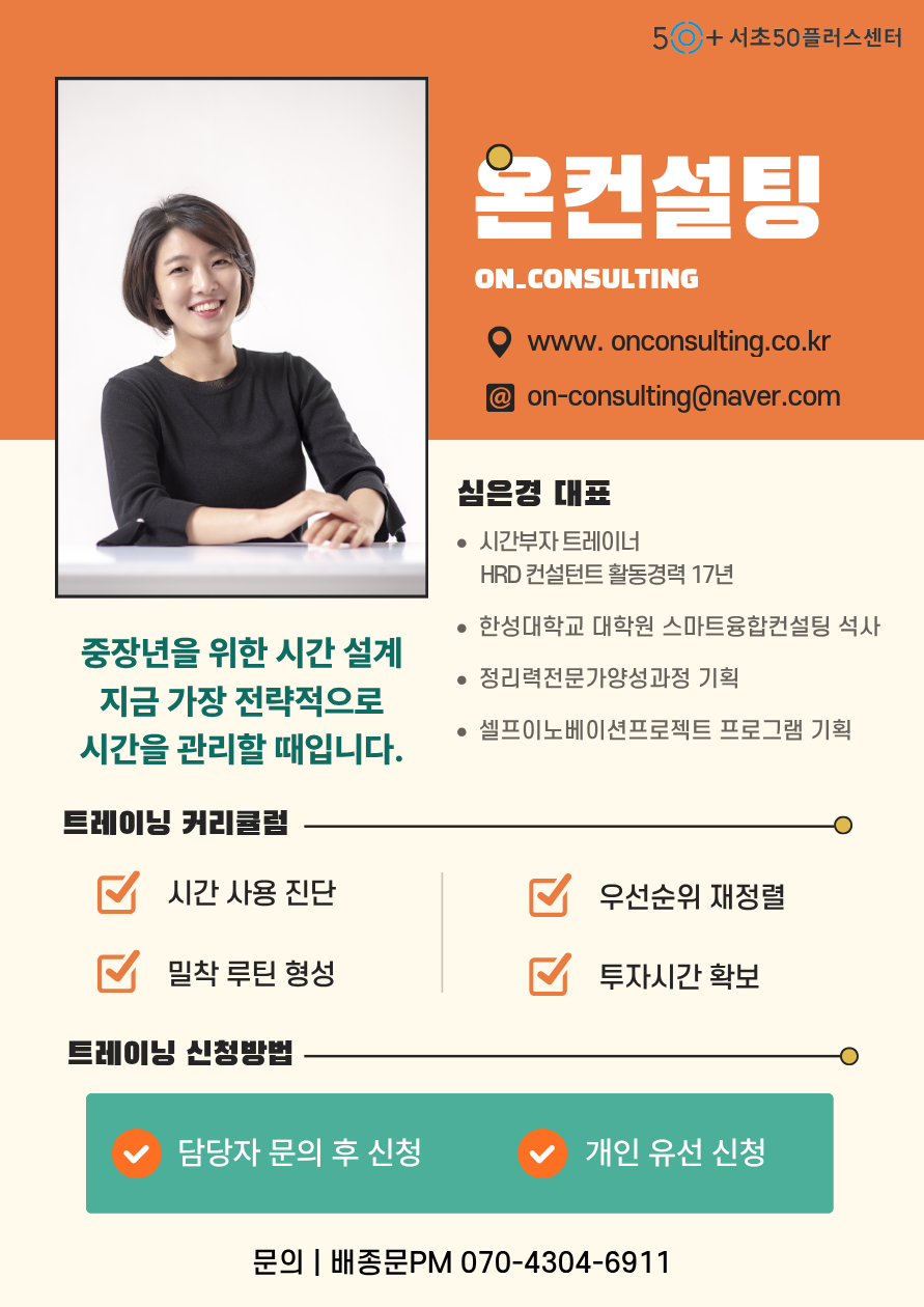 서울시 서초센터 | [상담] 중장년을 위한 1:1 시간 설계 상담