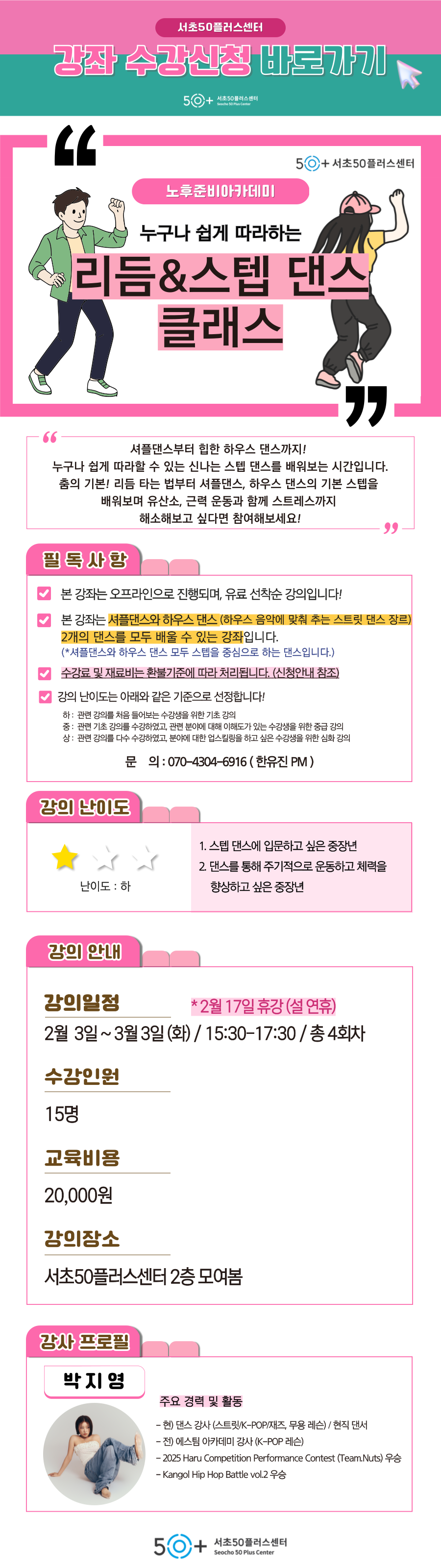 (1 회차) 2026.02.03(15:30 ~ 17:30) 모여봄 박지영 [ 리듬 & 제자리 & 스텝 힐&토 / 셔플 런닝맨 스텝 ]