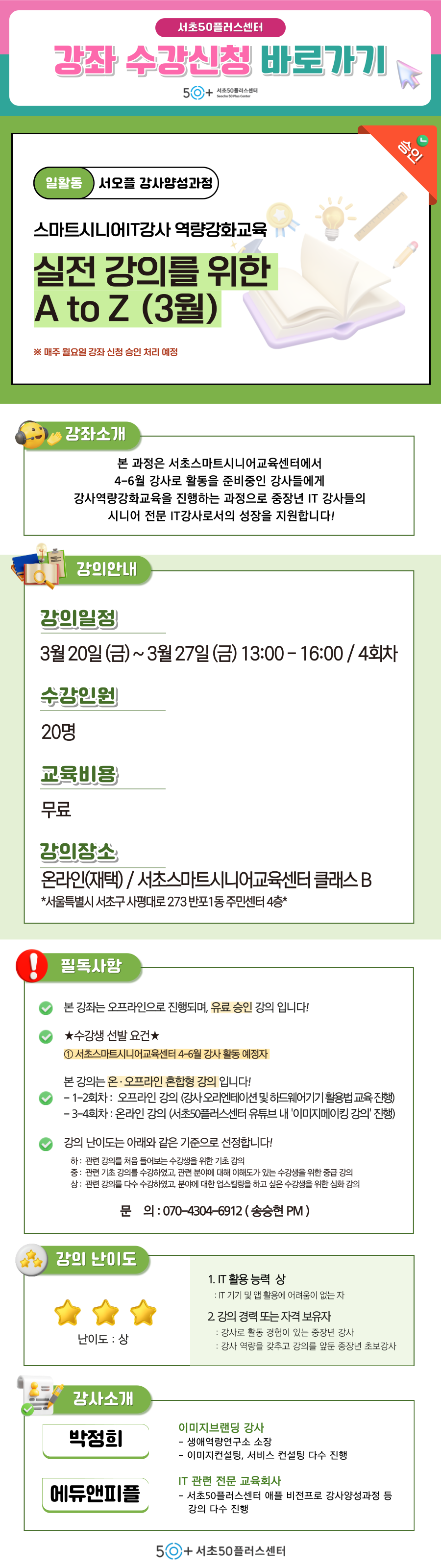 [50+강사] 스마트시니어IT강사 역량강화교육 : 실전강의를 위한 A to Z(3월)