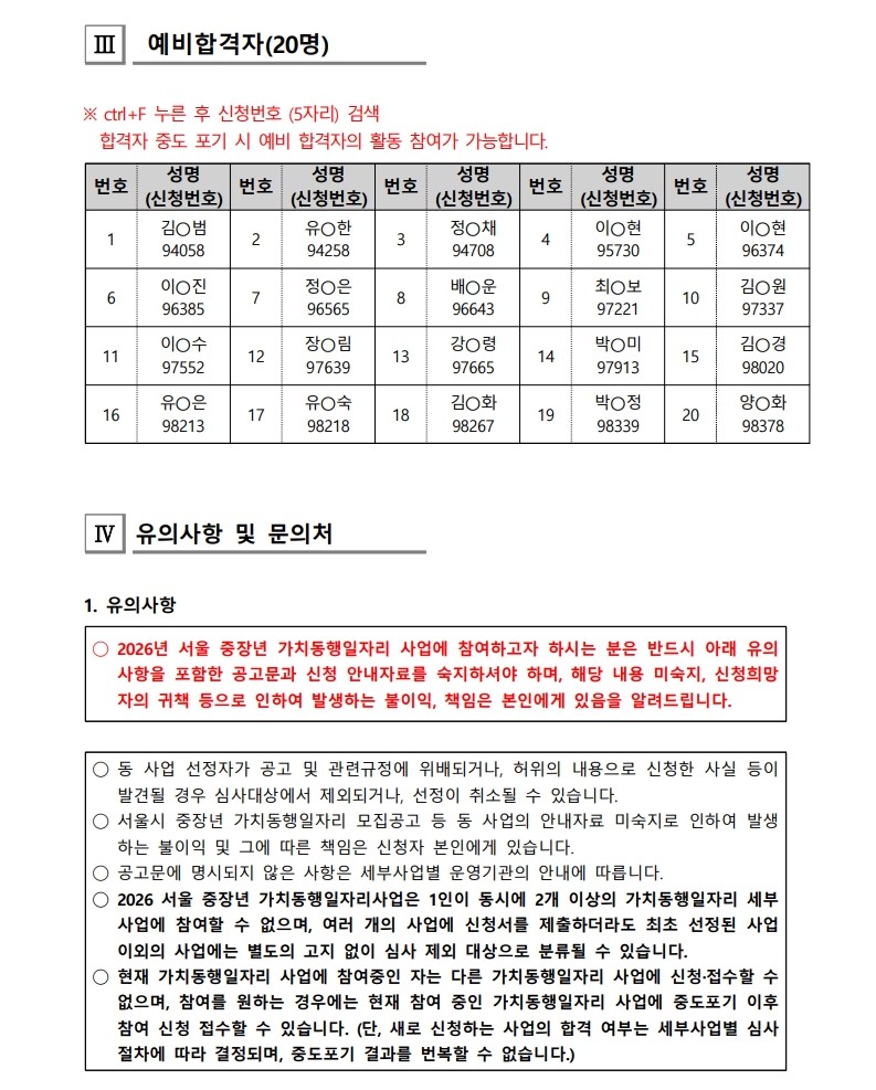 • 첨부파일표시 아이콘[2026-018] 2026 서울시 중장년 가치동행리자리사업 성동구 지역복지사업단 대면심사 결과 공고(공고용).pdf