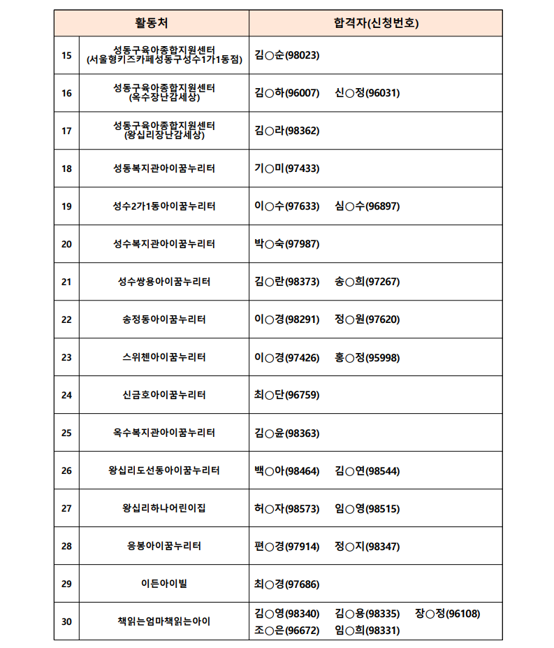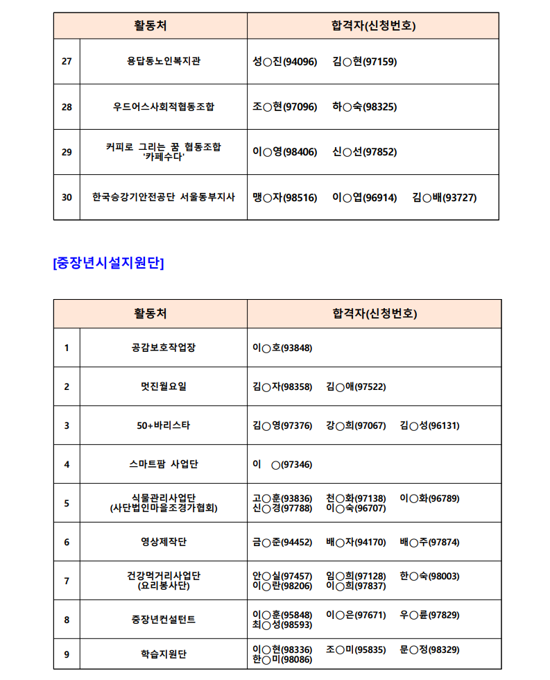 서울시 보람일자리, 성동50플러스센터, 합격자공고