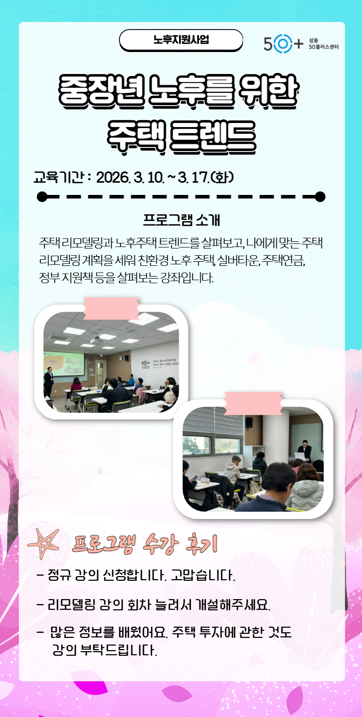 서울시 성동센터 | [3월 프로그램 수강후기] 중장년 노후를 위한 주택 트렌드