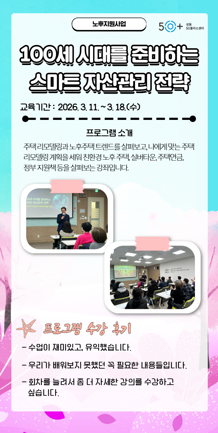 서울시 성동센터 | [3월 프로그램 수강후기] 100세 시대를 준비하는 스마트 자산관리 전략