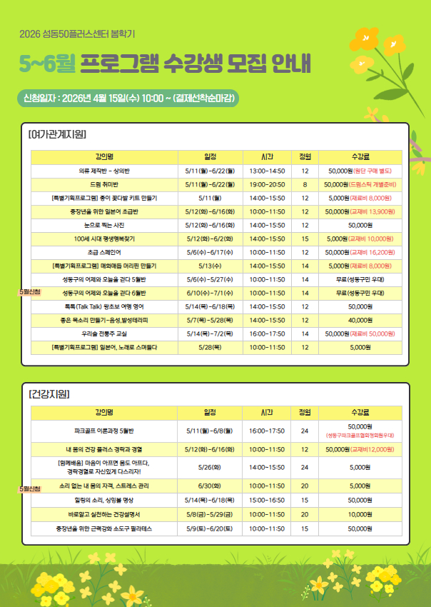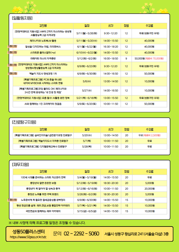 안녕하세요. 성동50플러스센터입니다.