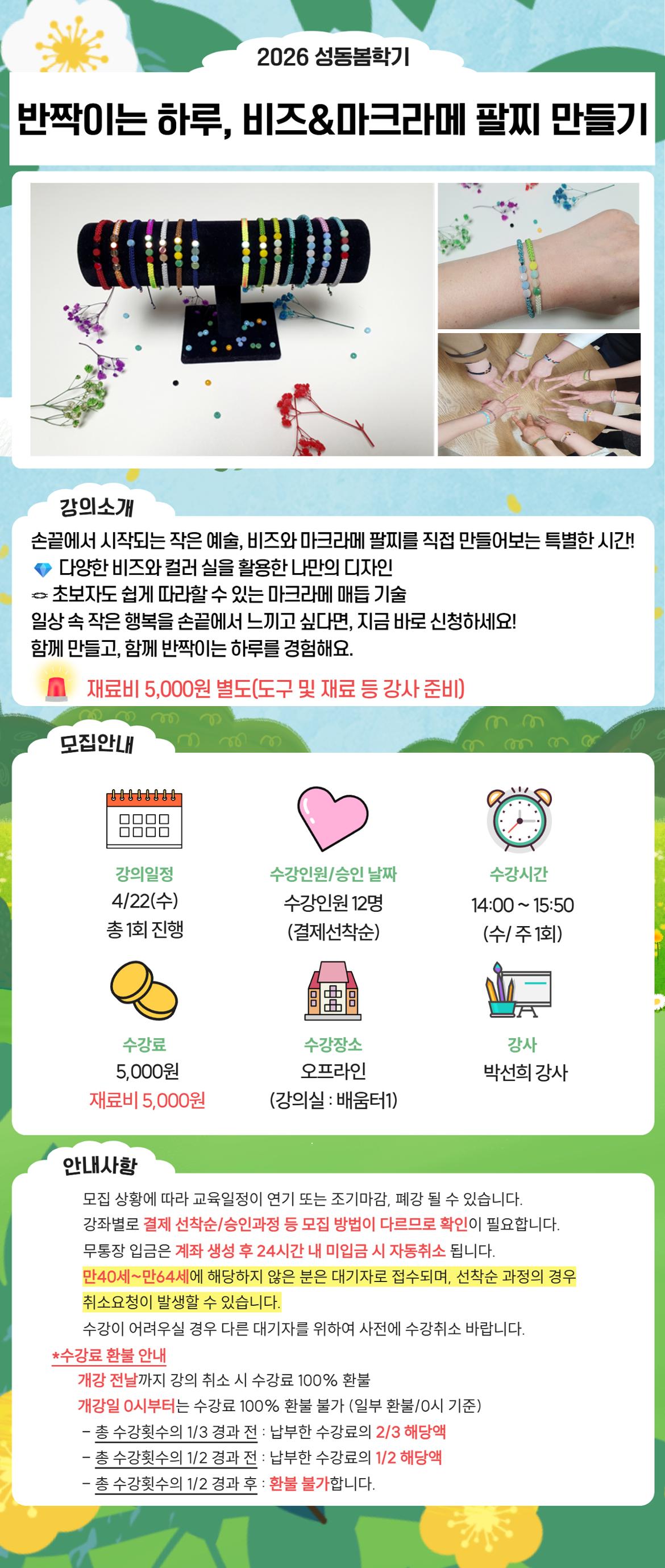 [특별기획프로그램] 반짝이는 하루, 비즈&마크라메 팔찌 만들기(수, 14:00-15:50)