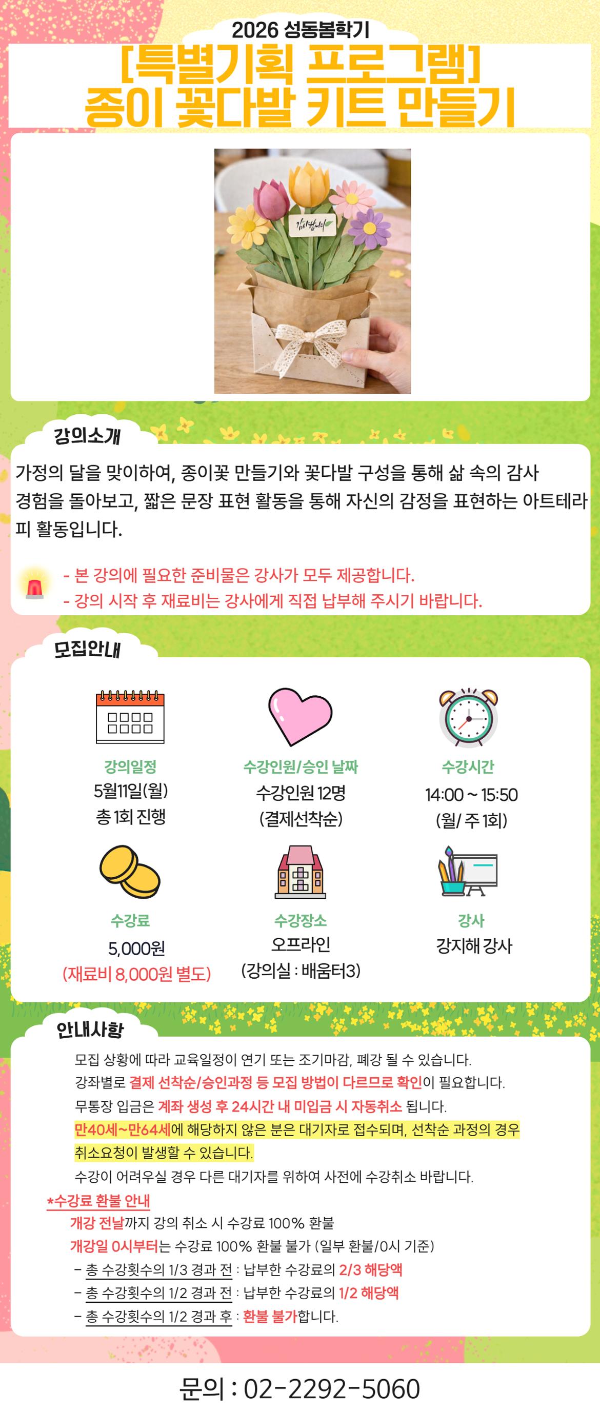 [특별기획 프로그램] 종이 꽃다발 키트 만들기(월, 14:00-15:50)