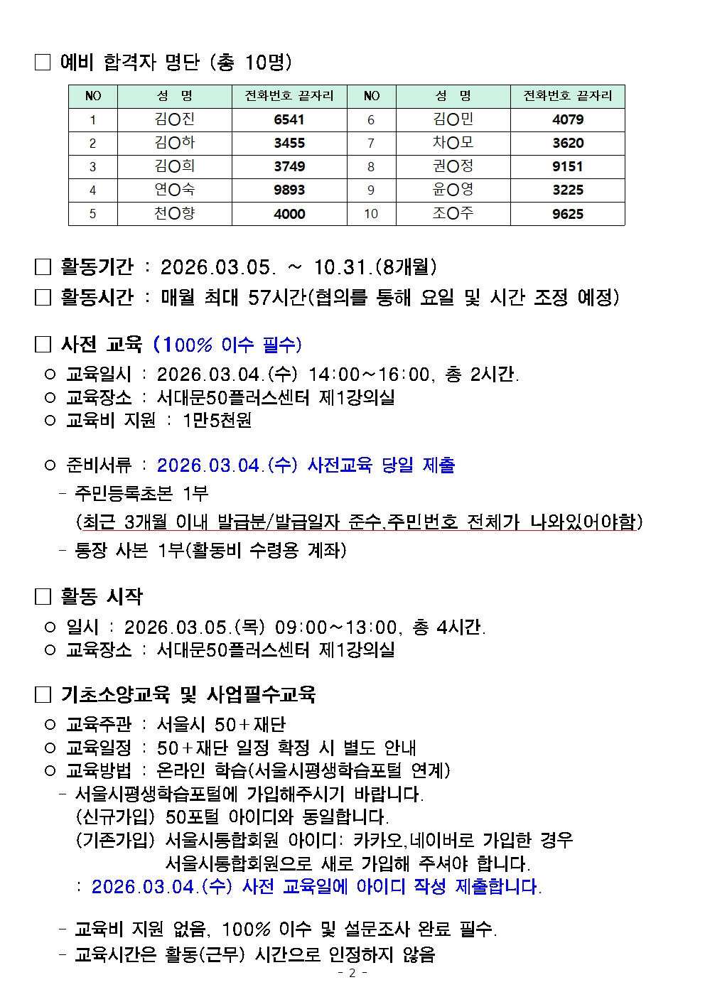 서울시 서대문센터 | 2026년 서울시 가치동행일자리 [지역자원순환실천단] 최종합격자 발표
