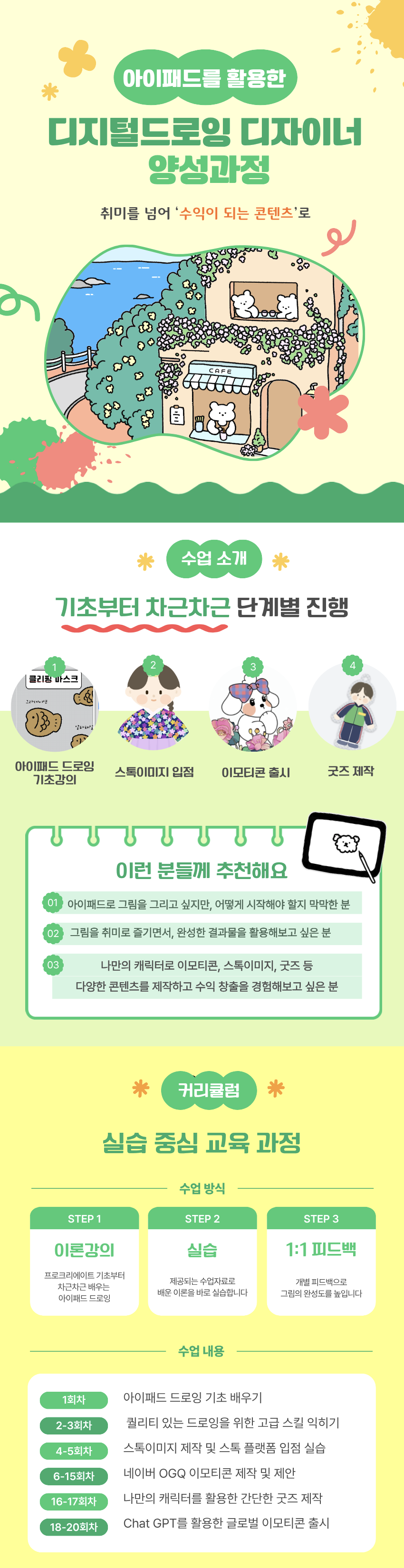 (11 회차) 2026.04.14(10:30 ~ 13:30) 강의실3 유여진 ● (개인작업) 이모티콘 제작 + 1:1 피드백 아이패드/펜슬/충전기
